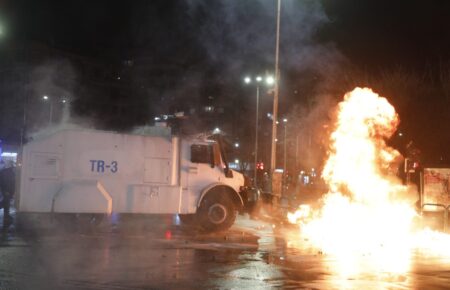 Policia në Tiranë përdori gaz lotsjellës dhe topa uji të premten...