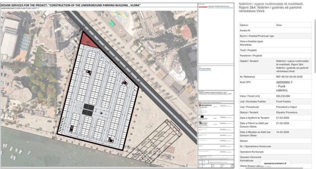 Vlora drejt transformimit: parkim nëntokësor me 295 vende në Lungomare, investim mbi 595 mln lekë